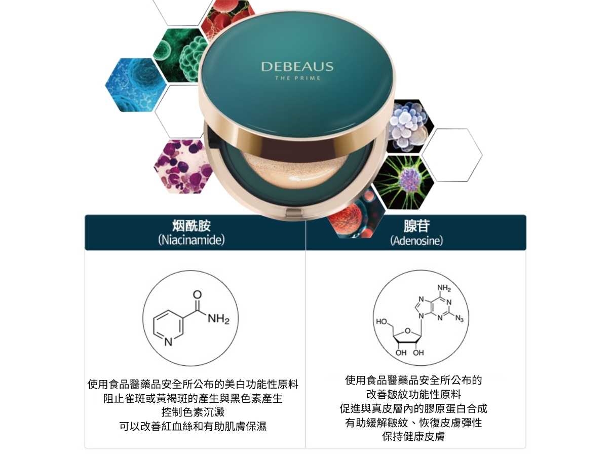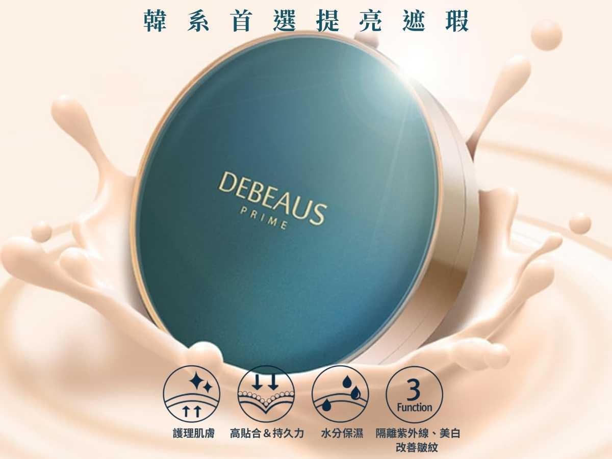 超人氣韓國氣墊粉餅,DEBEAUS氣墊粉餅打造美光肌膚,遮瑕防曬美白,添加多種保養成分。